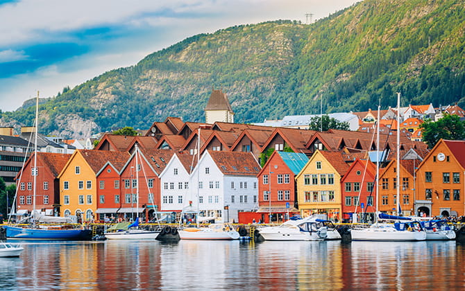 オスロに次ぐ規模の港町「ベルゲン」。フィヨルドの他にも、やまや海など多くの自然に囲まれています。